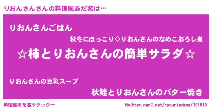 | 胡散臭い通販商品みたいなあだ名 | 『絶対に幸福をもたらす水素水…その名も「りおんさん」』 |