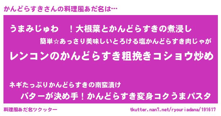 | 女子向けラノベタイトル風あだ名 | 『かんどらすきなんてお断りですっ。』 |