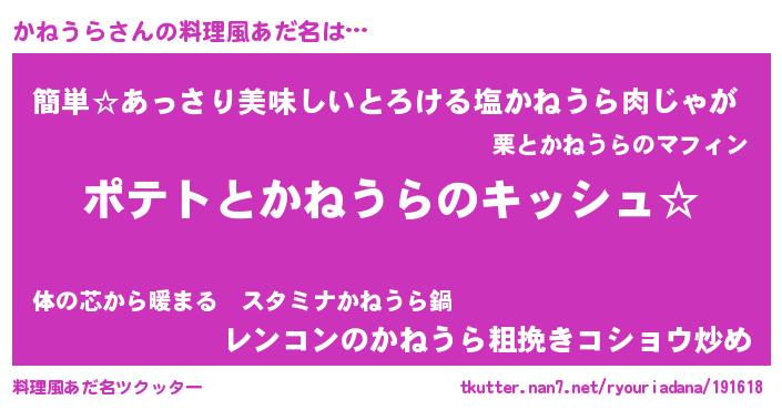 | 女子向けラノベタイトル風あだ名 | 『かねうらの卵を拾いまして』 |