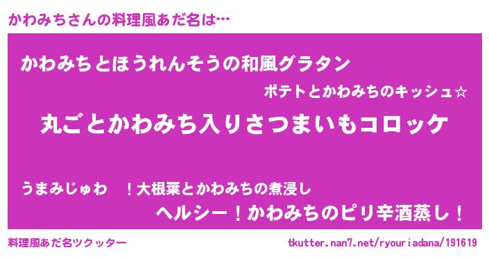 | ピコ太郎風あだ名 | 『カワ五郎』『ピカ三郎』『カカ太郎』 |