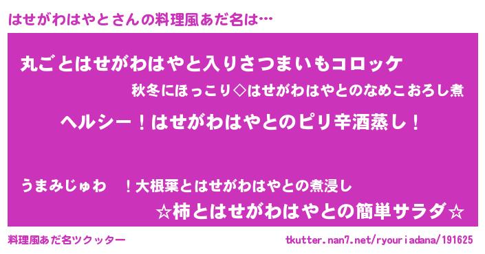 | 恥ずかしいあだ名 | 『ハセガワハヤトデラックス』『はせちん』 |