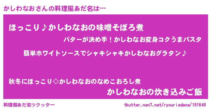 | 恥ずかしいあだ名 | 『カシリンリン』『プリティーかしわなお』 |
