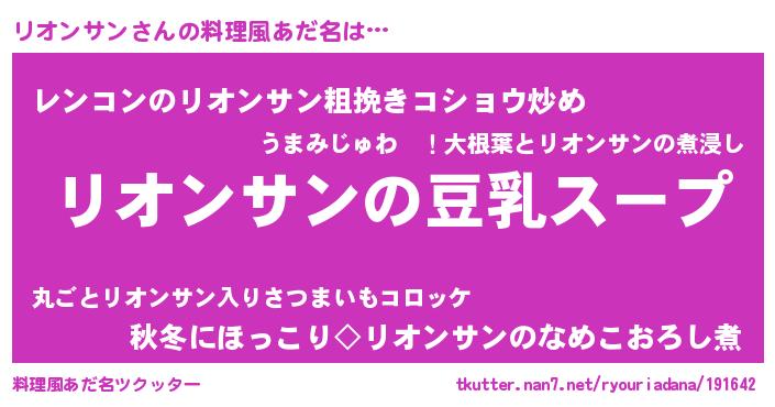 | 胡散臭い通販商品みたいなあだ名 | 『信頼と実績のサプリメント…その名も「リオンサン」』 |