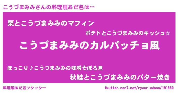 | ヒーロー風カッコイイあだ名 | 『仮面コウダー』『ネオコウヅマミミ』 |