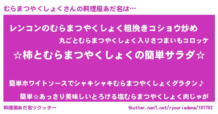 意味不明あだ名 | 『自称むらまつやくしょく』 |