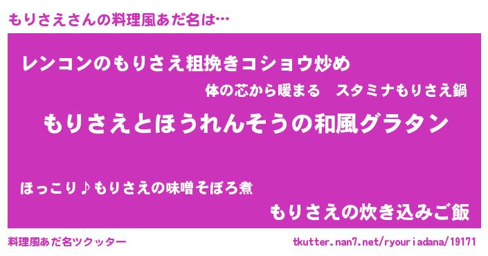 | 意味不明あだ名 | 『ヨモギ科もりさえ属』『自称もりさえ』 |