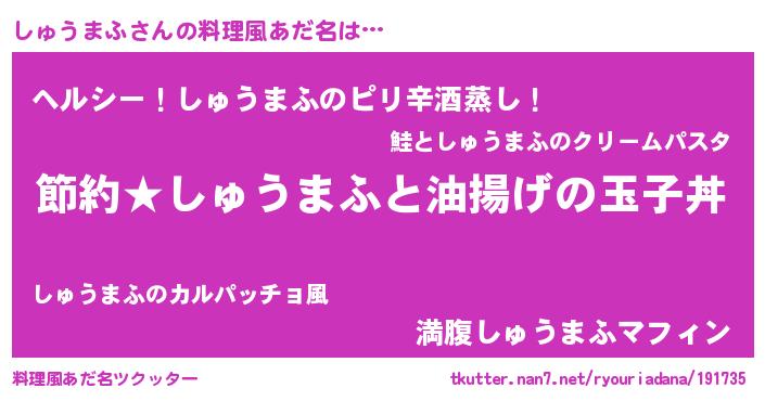 | 男性向けラノベタイトル風あだ名 | 『しゅうまふの憂鬱』 |