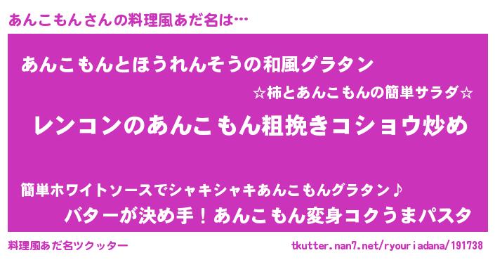 | 肩書あだ名 | 『あんこもん総統』『あんこもん大佐』 |