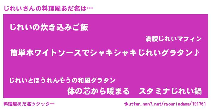 | 男性向けラノベタイトル風あだ名 | 『じれいの嫁は女の子じゃないと思った?』 |