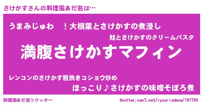 | ファンタジー風あだ名 | 『サケディッシュ』『サケフェル』 |