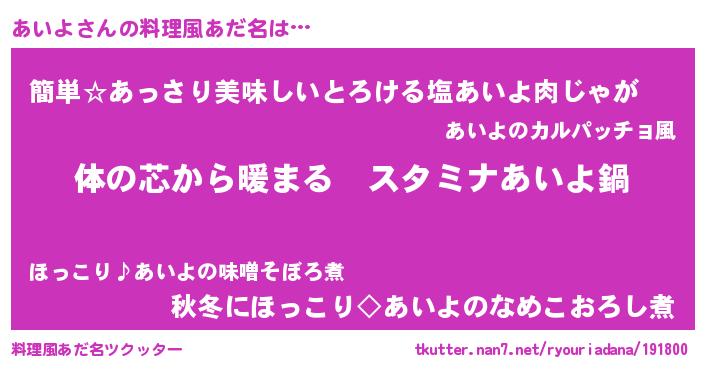 | ヒーロー風カッコイイあだ名 | 『ウルトラあいよマン』『ネオアイヨ』 |