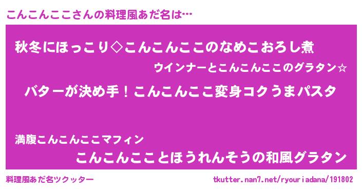 | ヒーロー風カッコイイあだ名 | 『愛の使者こんこんここ』『黄金騎士コン』 |