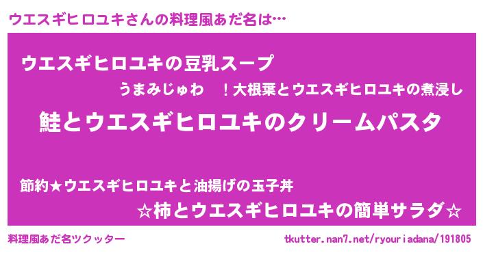 | 女子向けラノベタイトル風あだ名 | 『死神ウエスギヒロユキの再婚』 |