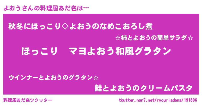 | ピコ太郎風あだ名 | 『ヨヨ太郎』『ピヨ六郎』『ピコヨ郎』 |