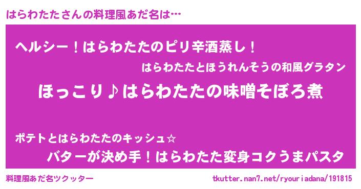 | ヒーロー風カッコイイあだ名 | 『スーパーハラワタタ』『魔戒騎士ハラ』 |