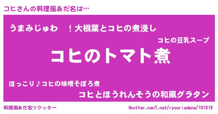 | ピコ太郎風あだ名 | 『ココ太郎』『ピコ史郎』『コヒ十郎』 |