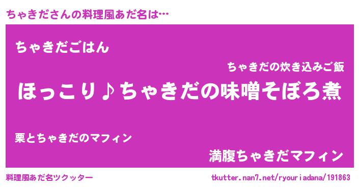 | 男性向けラノベタイトル風あだ名 | 『ちゃきだの憂鬱』『チャキダスレイヤー』 |
