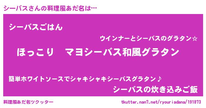 | 意味不明あだ名 | 『住所不定無職シーバス(56歳)』 |