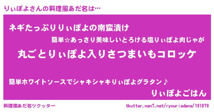 | 男性向けラノベタイトル風あだ名 | 『この素晴らしい世界にりぃぽよを!』 |