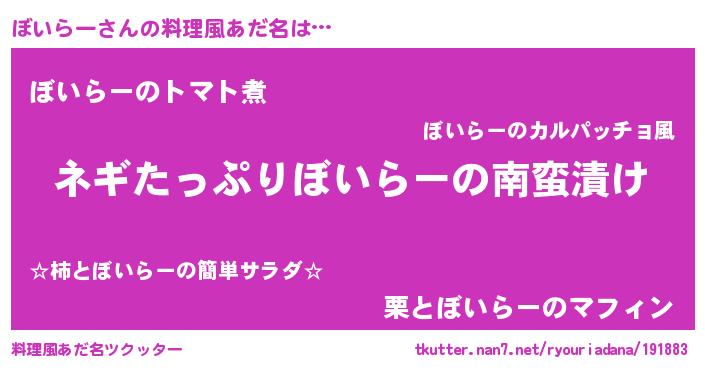 | 恥ずかしいあだ名 | 『プリティーぼいらー』『ボイリンリン』 |