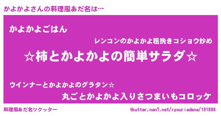 | 男性向けラノベタイトル風あだ名 | 『緋弾のカヨカヨ』『カヨカヨスレイヤー』 |