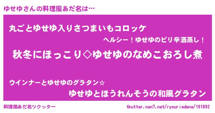 | ヒーロー風カッコイイあだ名 | 『仮面ユセダー』『最強戦士ユセユ』 |