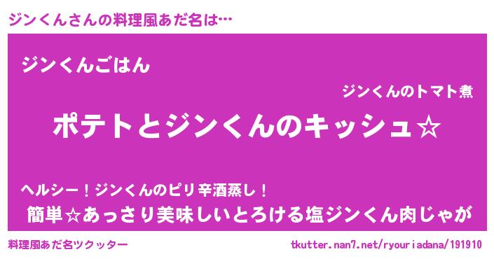 | 女子向けラノベタイトル風あだ名 | 『ジンくんの卵を拾いまして』 |