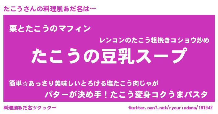 | 胡散臭い通販商品みたいなあだ名 | 『信頼と実績のサプリメント…その名も「たこう」』 |