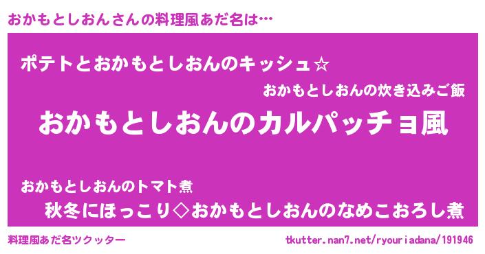 | 意味不明あだ名 | 『住所不定無職おかもとしおん(74歳)』 |