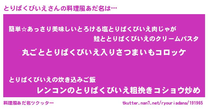 | ヘコむあだ名 | 『とりばくびいえ(爆)』『レバニラ』 |