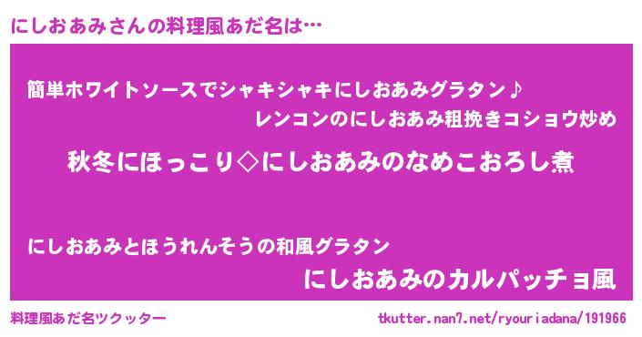 | 意味不明あだ名 | 『とにかく怪しいにしおあみ』 |
