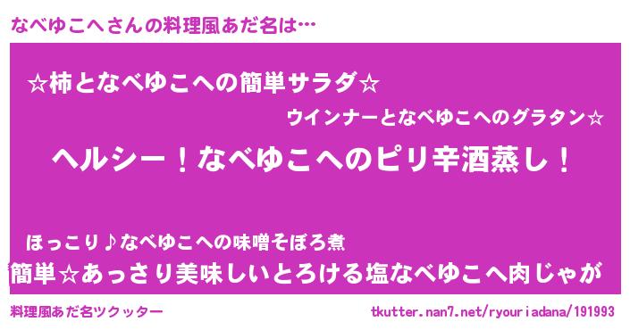| ヘコむあだ名 | 『なべゆこへ(爆)』『なまこ酢』 |