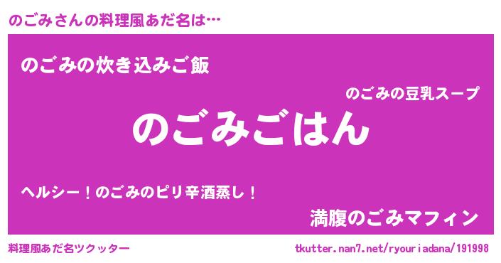| ヘコむあだ名 | 『のごみ(笑)』『のごぷりん』 |