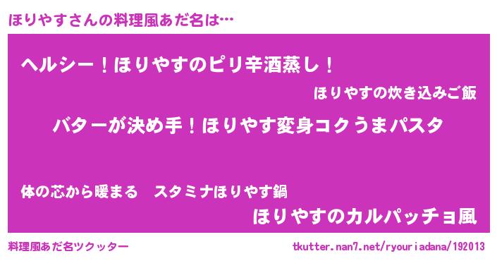 | 女子向けラノベタイトル風あだ名 | 『ほりやす恋絵巻』『闇のほりやす』 |