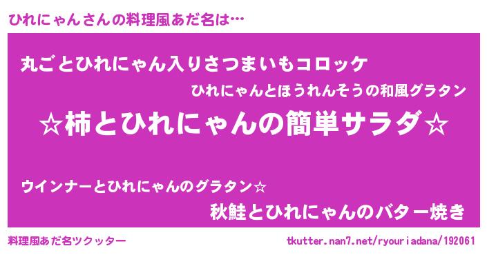 | ヘコむあだ名 | 『ひれにゃん(笑)』『なまこ酢』 |