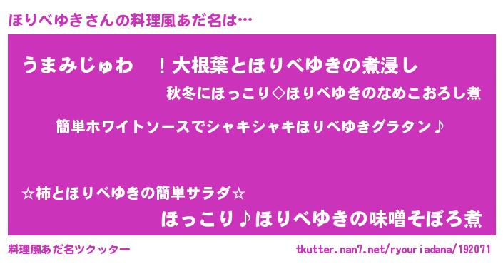 | ポケモン風あだ名 | 『ヒホリベユキ』『ホリベダネ』 |