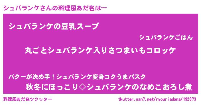 | 男性向けラノベタイトル風あだ名 | 『この素晴らしい世界にシュバランケを!』 |
