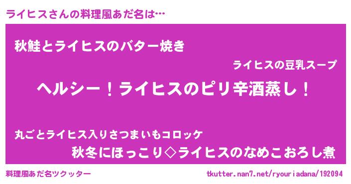 | ヘコむあだ名 | 『ライヒス(笑)』『ライ太郎』 |