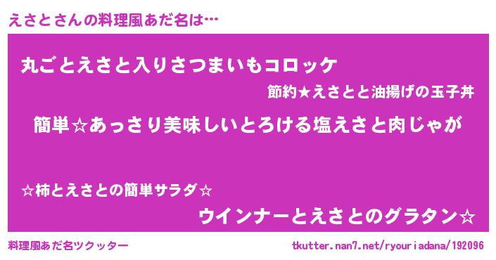 | ヘコむあだ名 | 『えさと(笑)』『なまこ酢』『えさを』 |