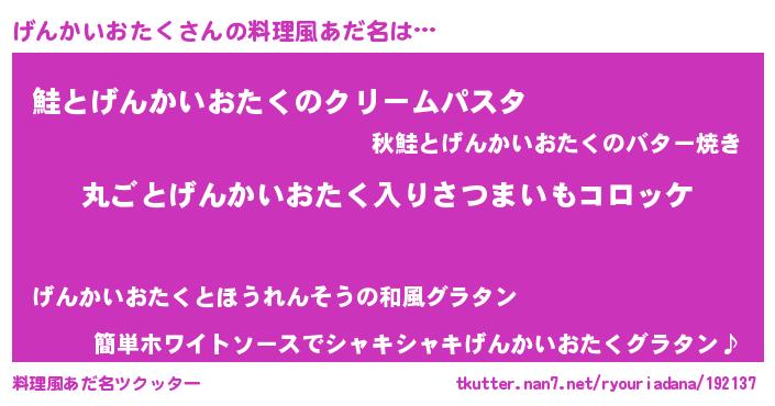 | ヘコむあだ名 | 『げんっぺ』『げんかいおたく(小並感)』 |