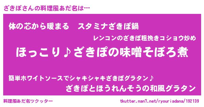 | 男性向けラノベタイトル風あだ名 | 『ざきぽの憂鬱』『魔法科高校のざきぽ』 |