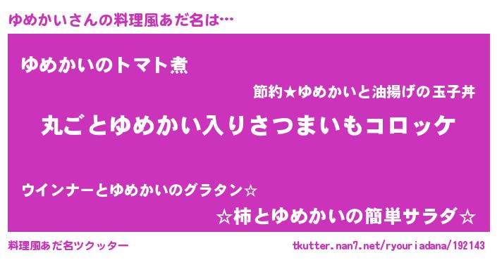 | ヘコむあだ名 | 『ゆめにー』『豆乳』『ゆめぷりん』 |