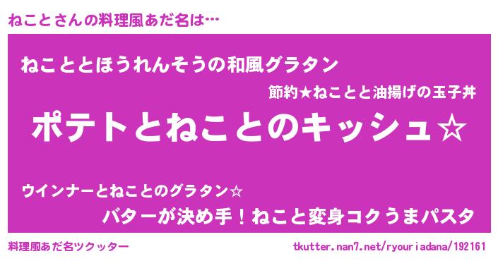 | ヒーロー風カッコイイあだ名 | 『幻影騎士ネコ』『慈愛の使者ねこと』 |