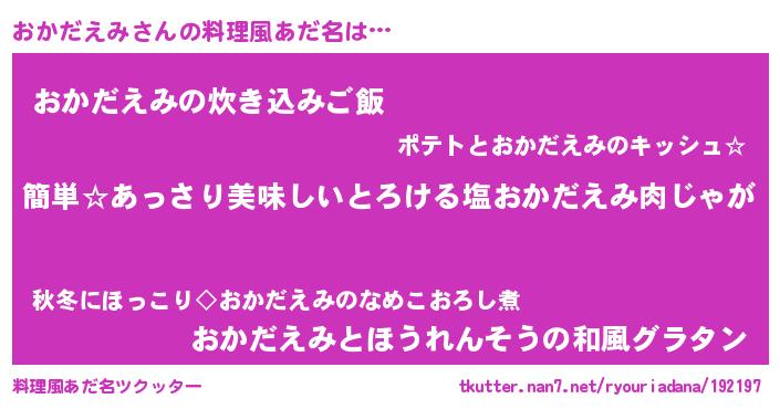 | 欧米人風あだ名 | 『ダルビッシュおかだえみ』 |