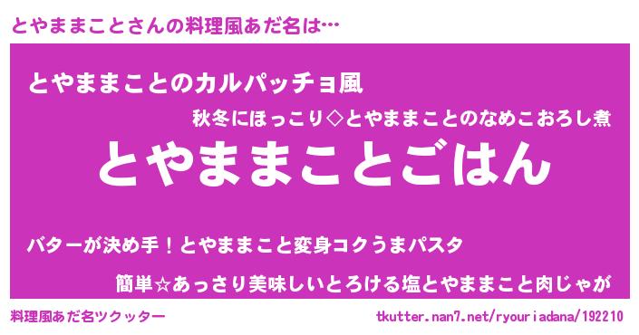 | ヘコむあだ名 | 『とやままこと(笑)』『とやもー』 |