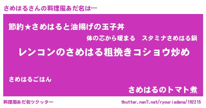 | ヘコむあだ名 | 『さめふぇ~』『豆乳』『さめお』 |