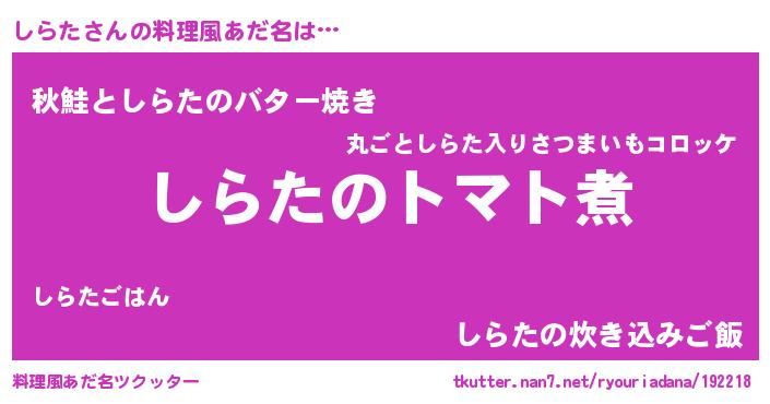 | 欧米人風あだ名 | 『ダニエルしらた』『ダルビッシュしらた』 |