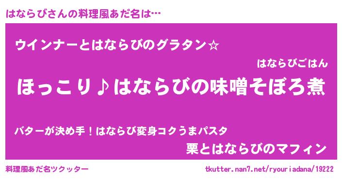 | ピコ太郎風あだ名 | 『ハコ四郎』『ピハ五郎』『ハハ太郎』 |