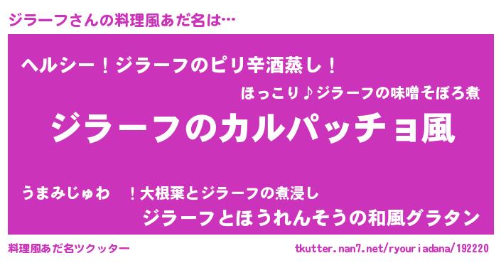 | 意味不明あだ名 | 『住所不定無職ジラーフ(40歳)』 |