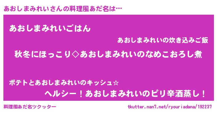 | 男性向けラノベタイトル風あだ名 | 『あおしまみれいに滅ぼされるだけの簡単なお仕事です』 |